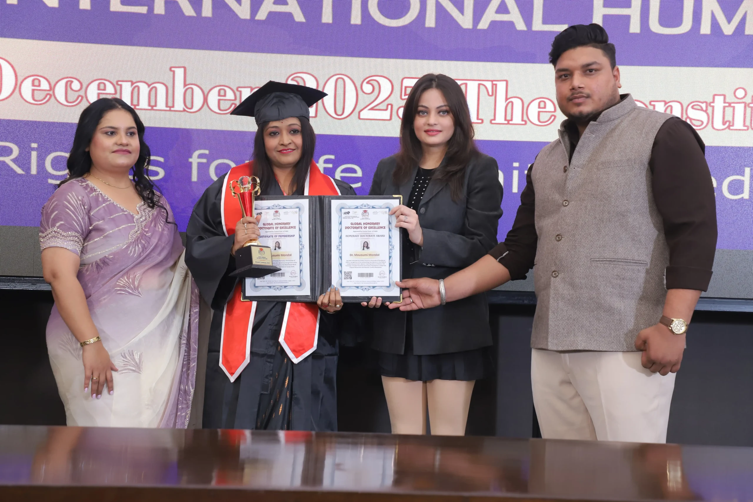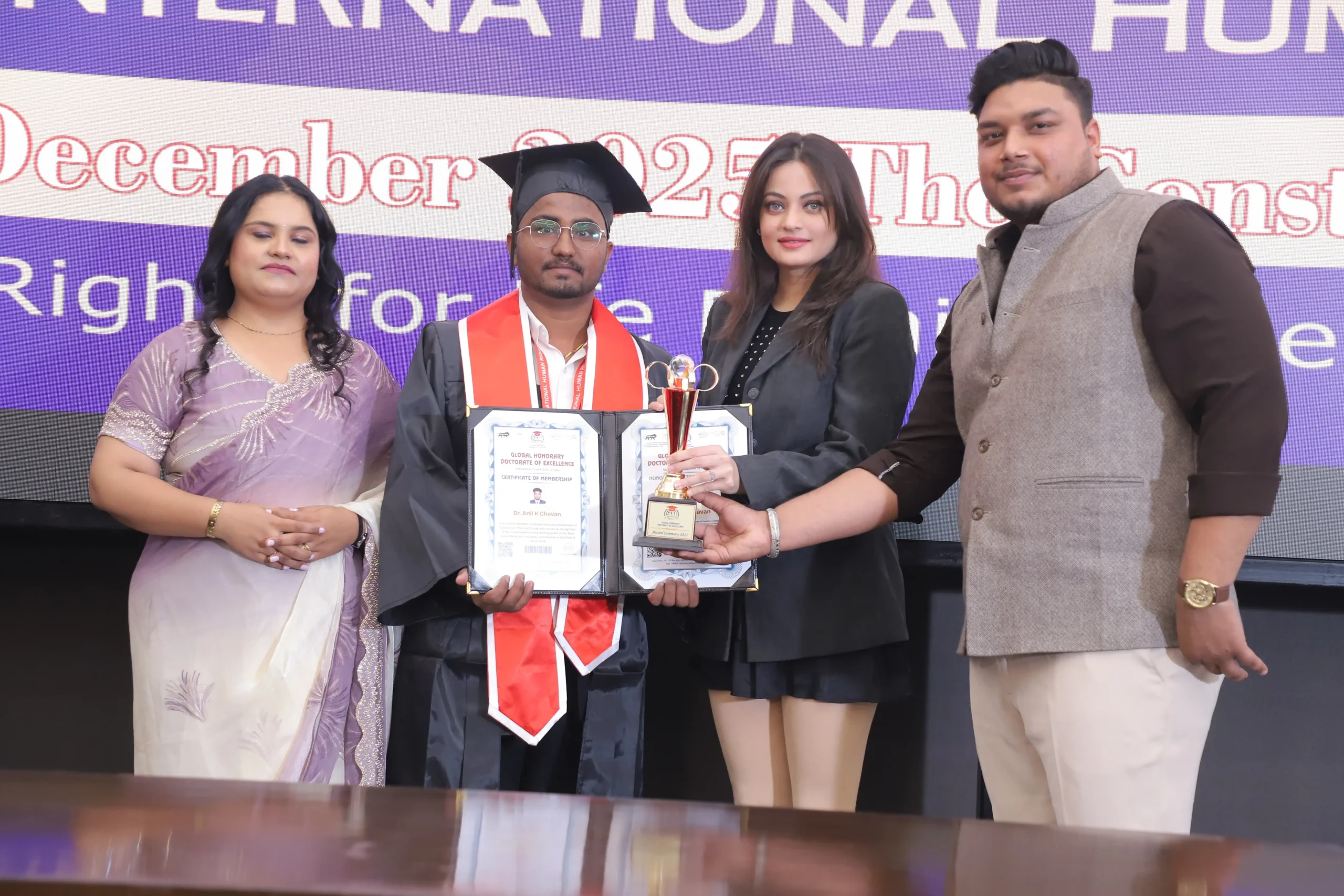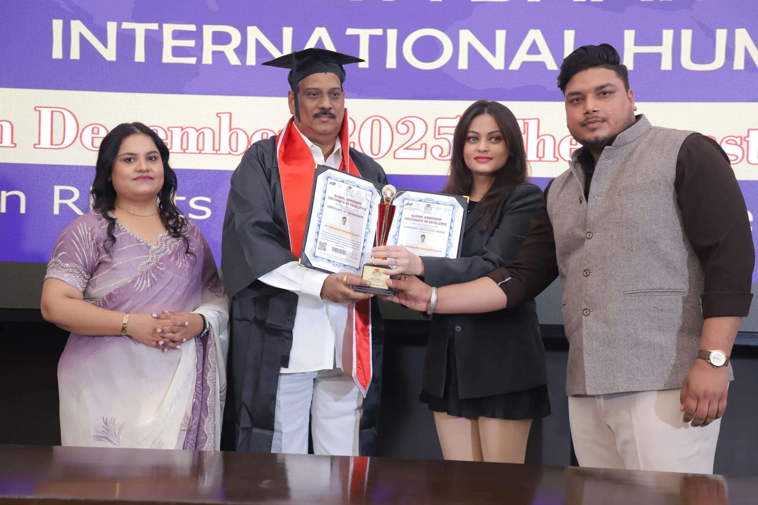 The Global Honorary Doctorate of Excellence 2025, organized by Global Honorary Doctorate, in association with Rashtriya Bharat Samman and International Human Rights, is a prestigious award ceremony dedicated to recognizing individuals who have made remarkable contributions to society.